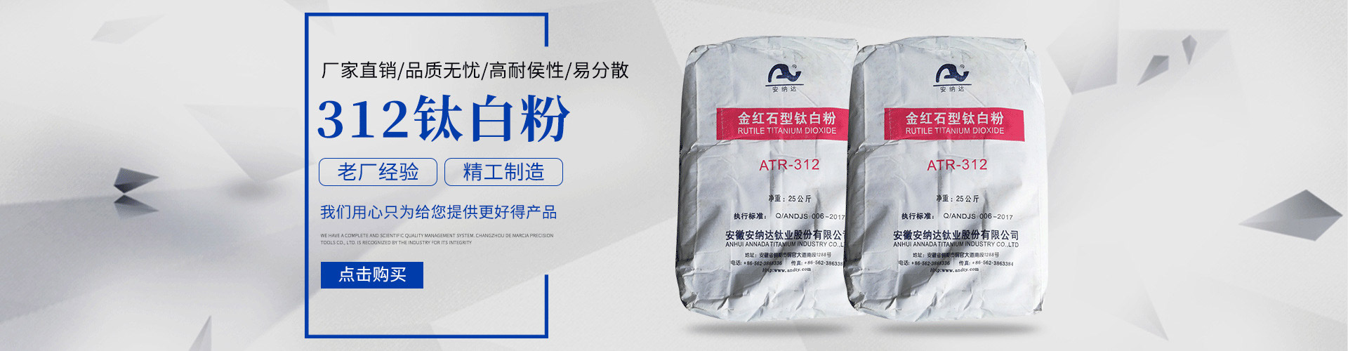 常州安鈦化工有限公司經銷批發的鈦白粉、沉淀硫酸鋇、立德粉、滑石粉、高嶺土、炭黑、云母粉、彩色顏料、氫氧化鈣、硅微粉、氧化鐵紅、氧化鐵黑、金紅石型鈦白粉、銳鈦型鈦白粉、進口鈦白粉暢銷消費者市場,在消費者當中享有較高的地位,公司與多家零售商和代理商建立了長期穩定的合作關系。常州安鈦化工有限公司經銷的鈦白粉、沉淀硫酸鋇、立德粉、滑石粉、高嶺土、炭黑、云母粉、彩色顏料、氫氧化鈣、硅微粉、氧化鐵紅、氧化鐵黑、金紅石型鈦白粉、銳鈦型鈦白粉、進口鈦白粉品種齊全、價格合理。常州安鈦化工有限公司實力雄厚,重信用、守合同、保證產品質量,以多品種經營特色和薄利多銷的原則,贏得了廣大客戶的信任。